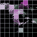 The colors of the leaves are then transferred back into the squares of the grid as large pixels. 16384 are the amount of emitting diodes on the 128px LED artworks from Spøgelsesmaskinen.