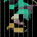 By exposing a 128px 8×8 grid to simulated physics turbulence, the grid interferes with the diodes in a ever changing moiré patterns, revealing a subtle breeze of random generated palm leaves behind the grid.